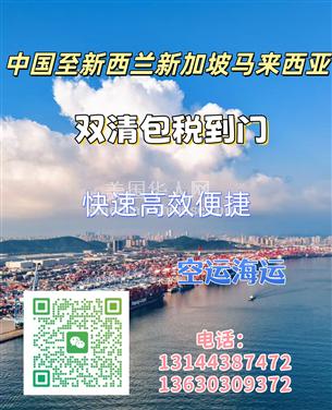 中国至新西兰、新加坡、马来西亚一站式国际物流解决方案