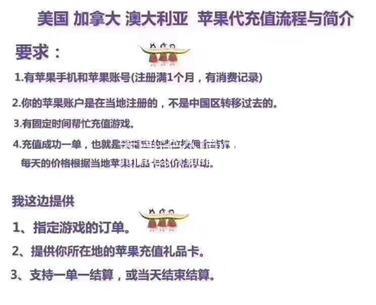 4.基本要求:苹果国外手机用户.苹果id注册满半年以上即可 有充值消费过的优先