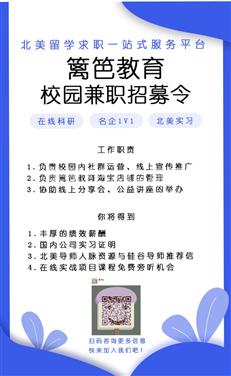 我是篱笆教育团队的北美销售招募人Ziky, 我们现在招募有市场销售经验的伙伴加入我们的团队, 可兼职或全职,报酬丰厚, 想邀请你的加入我们的团队。篱笆教育主要从事北美留学求职行业,提供自主研发的在线实战科研项目、名企一对一等产品服务,为学员带来更多实战机会和行业学习指导。我们的网站是:www.libaedu.com, 如果你有兴趣加入我们,可以联系vx+ nicco_qi 直接和我联系。谢谢!